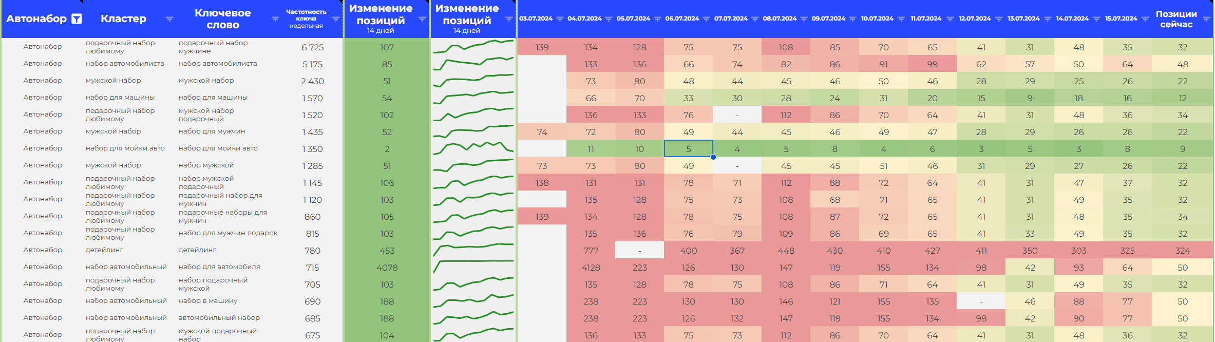 - После поднятия позиций внутренняя реклама начала работать, подтягивая новые кластеры.