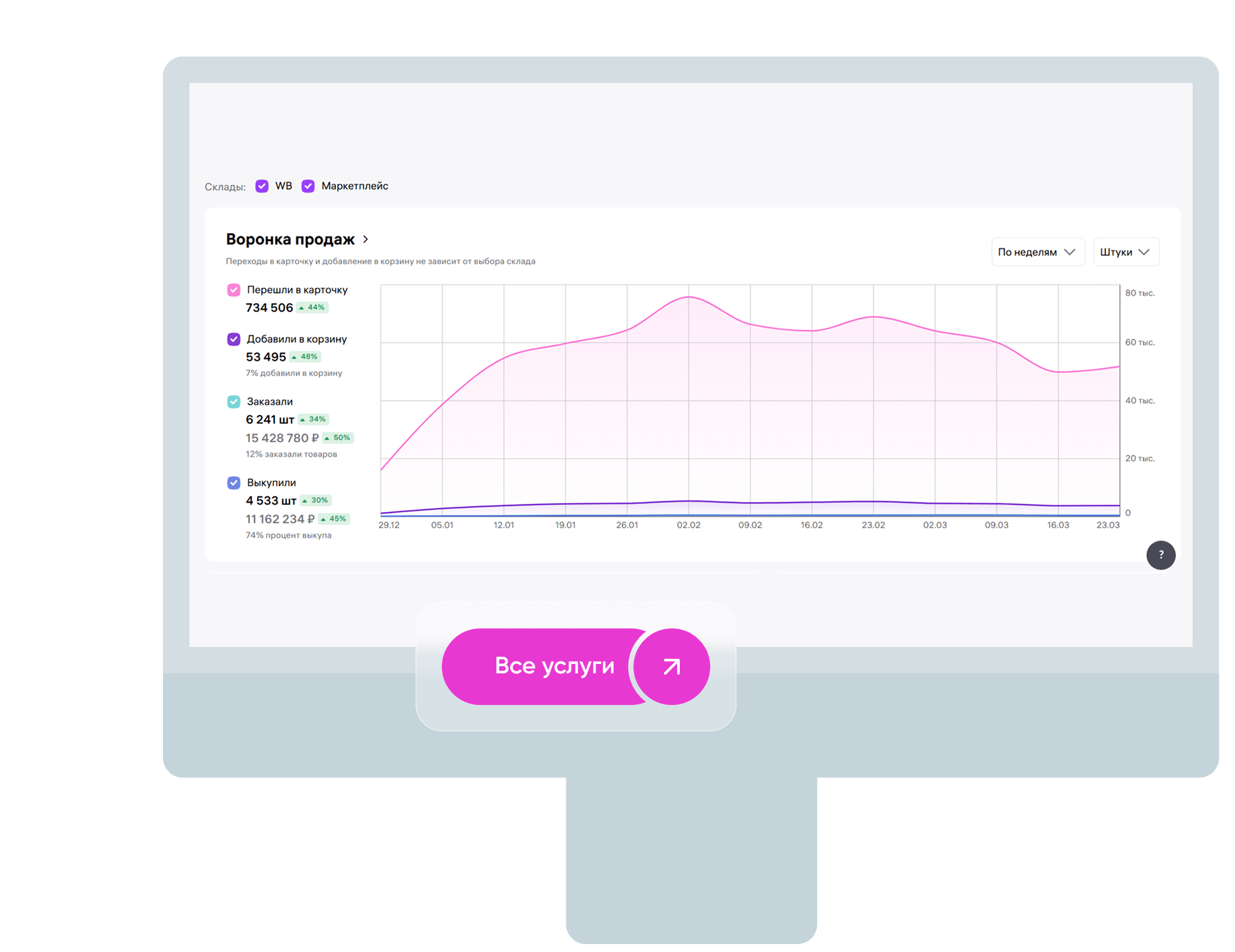 – SEO + выкупы + отзывы – Реклама и снижение ДРР – Контроль остатков и OOS – Аналитика и отчётность – MPO-стратегия